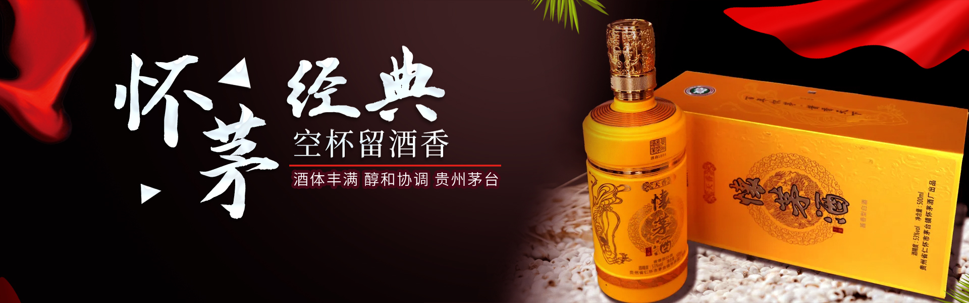 貴州茅臺鎮懷茅酒廠,坐落于馳名中外的中國酒都-茅臺鎮,至今已有一百多年的釀酒歷史,現有廠房面積2.3萬平方米,年產量達3000余噸,與茅臺酒共享茅臺鎮得天獨厚的朱砂土壤和氣候。產品選用赤水河兩岸的優質紅高粱、小麥為主要原料,秉承茅臺傳統釀酒工藝釀制